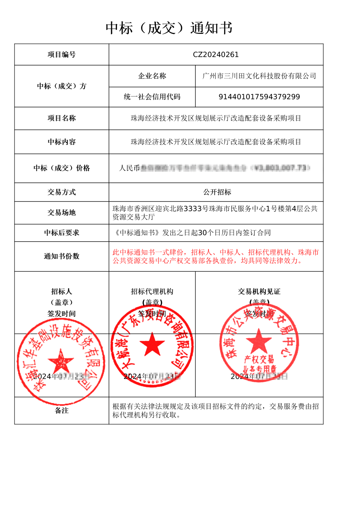此次中标不仅是对三川田数字创意能力的高度认可,更是对我们专业服务水平的有力支持。作为聚焦产业馆领域、深耕广州24载的数字化智慧展示服务企业,三川田将继续发挥在创意设计、数字科技、工程集成的优势,推动智能化展示与互动体验的深度融合。