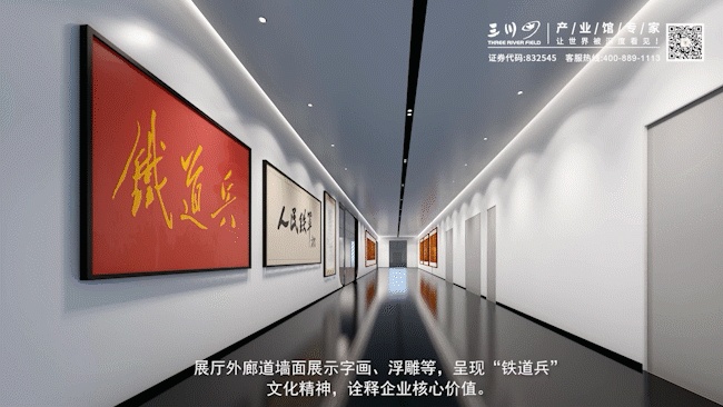 三川田根据中铁建港航局沉淀多年的文化精魂,及“大土木、大市场、大科研”的三大发展理念进行挖掘,以“纵横四海 行路致远”为主题,通过“序·形象-创·大业-道·致远-践·文化-恒·未来”五大展区,综合展现铁道兵文化、三大品牌、重大工程、海外业务、科研成果、党建引领、群团工作等企业重大建设成果。