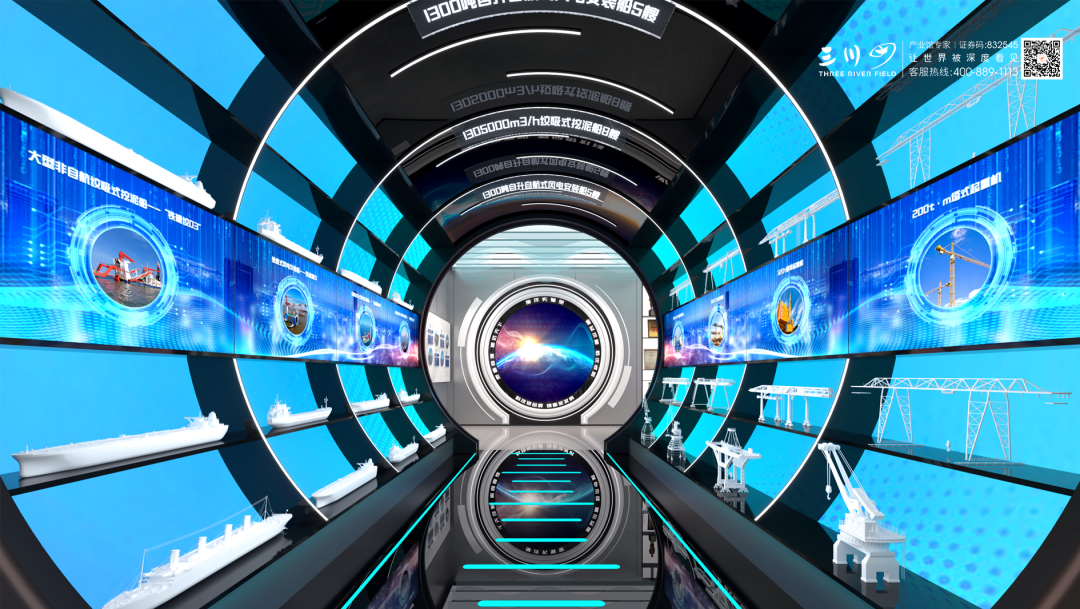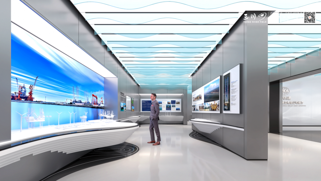 - 中国铁建港航局企业展厅设计效果图:纵横四海行路致远,沉浸式四折幕
