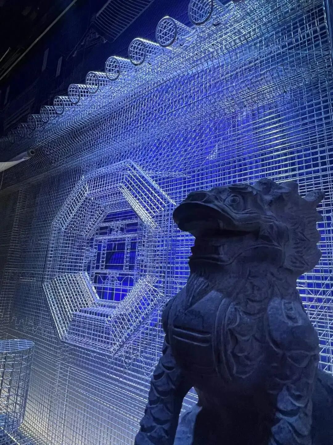 延展出的“积水潭码头盛景”,一侧是以传统工艺编织构建的北京城传统建筑,与积水潭码头的场景相映生辉,形成沉浸式艺术化展示空间,再现隋唐码头百业兴旺、民生繁荣。