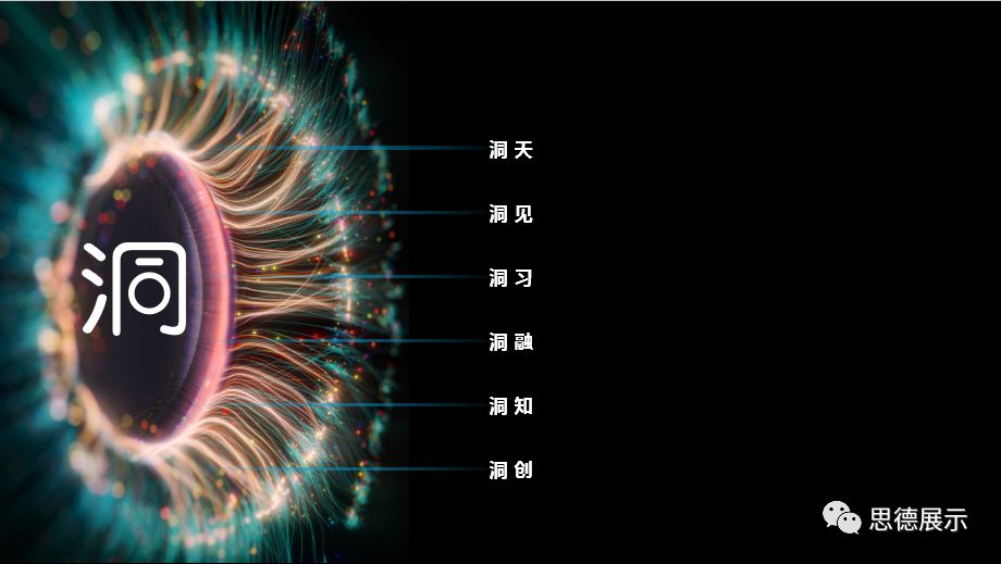 展厅布局主要分为户外休息区与体验中心区两大区域,体验中心由洞天、洞见、洞习、洞融、洞知、洞创为脉络划为七大功能区。