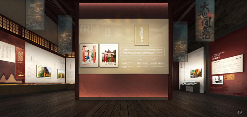 因此天地间博展则另辟蹊径,以桐城非遗为主线,以实物展示结合图文展板、场景复原、多媒体互动等现代展陈手段,详尽准确的展示桐城非物质文化遗产代表项目,用趣味性、互动性的沉浸式体验展馆,引导群众身临其境的走近桐城历史,了解非遗脉络,体验非遗魅力,同时打造一座引人入胜的文化地标景点,有教育意义的展示窗口,具有鲜明桐城特色的优秀文化展馆。