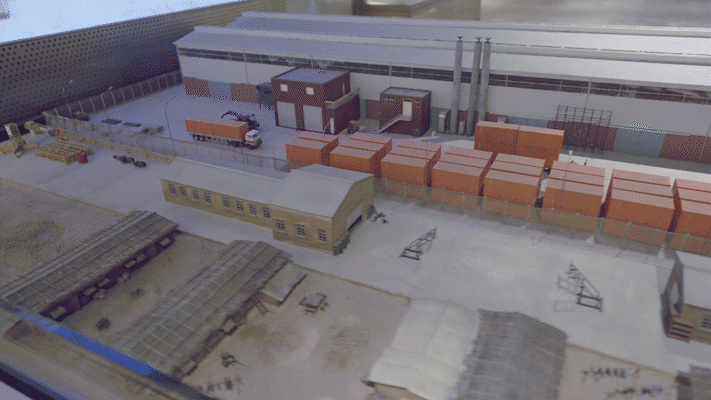 中集集团40周年历史展馆设计方案:深黑金属工业风+沙盘造景沉浸体验