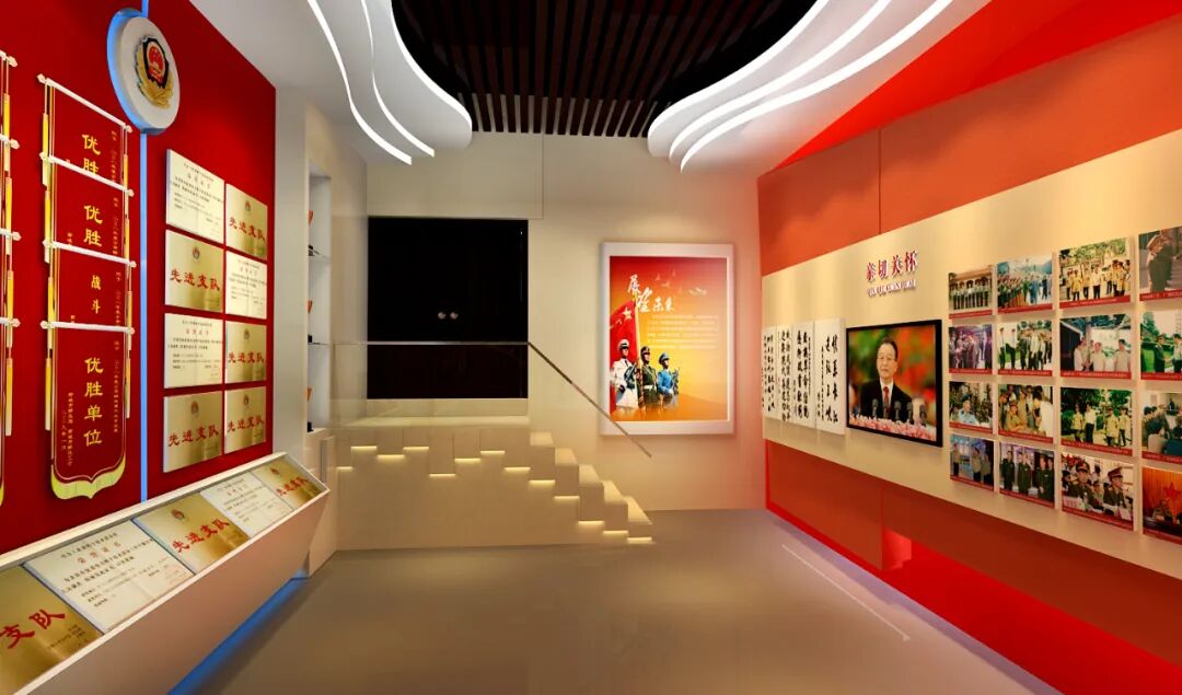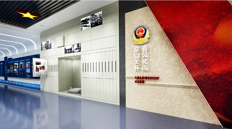 在设计理念上,本次警史馆设计案例以“传承与创新”为核心,既尊重警察历史的厚重感,又注重现代审美与实用性的结合。在队采用了简约大气的现代设计风格,通过线条的流畅与空间的通透,营造出一种庄重而不失活力的氛围。